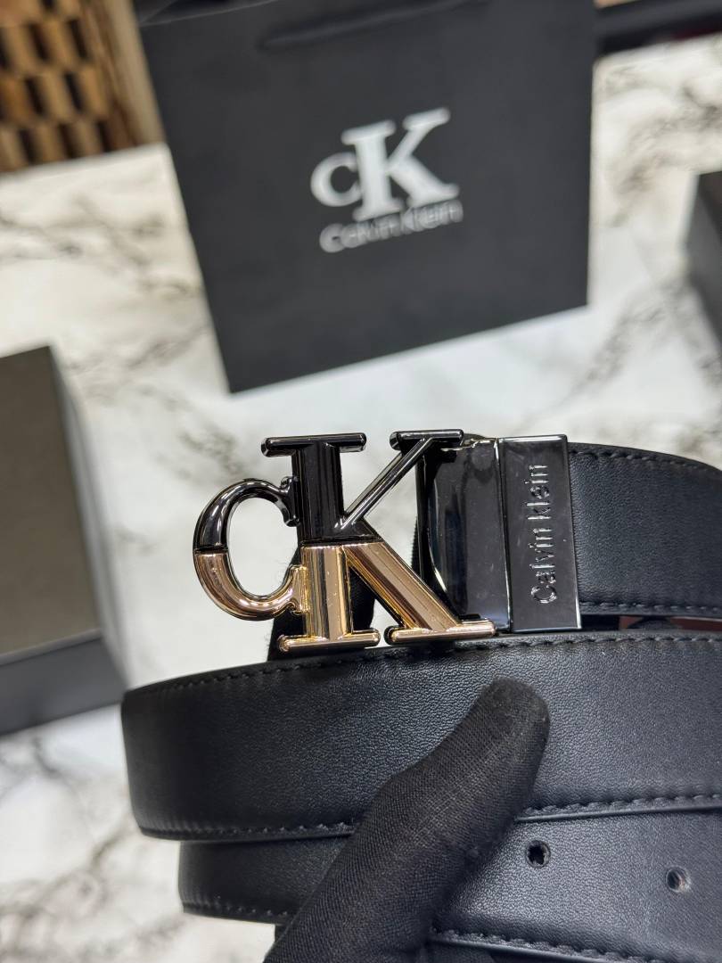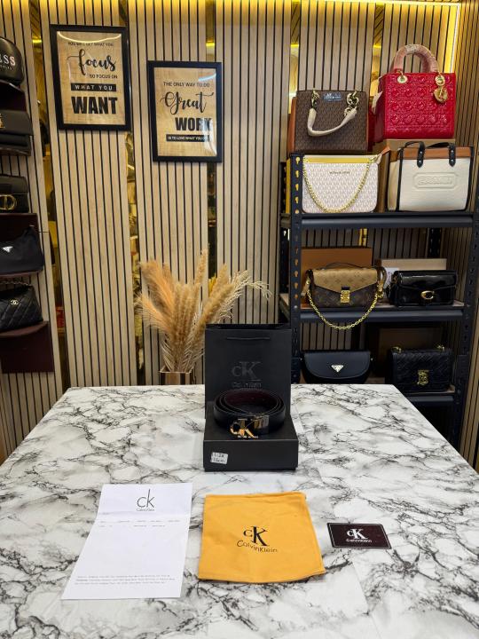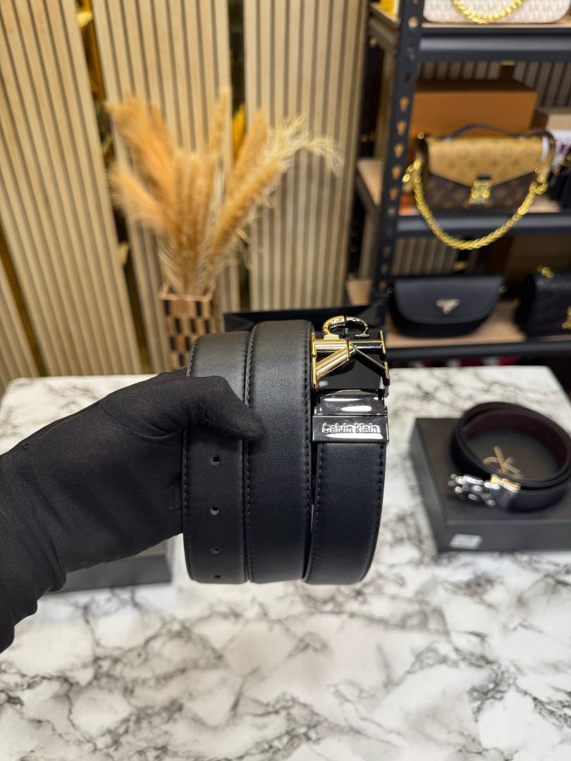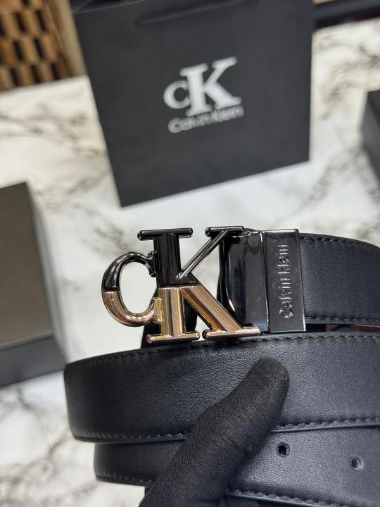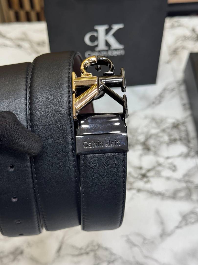 Calvin_Klein Black Leather Belt With Signature CK Initial Buckle With Box Dust Bag Including Carry Bag (11-2)
