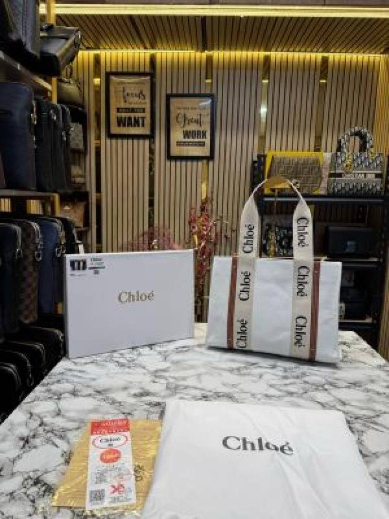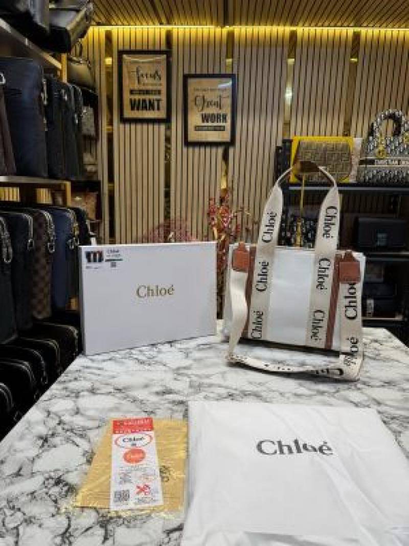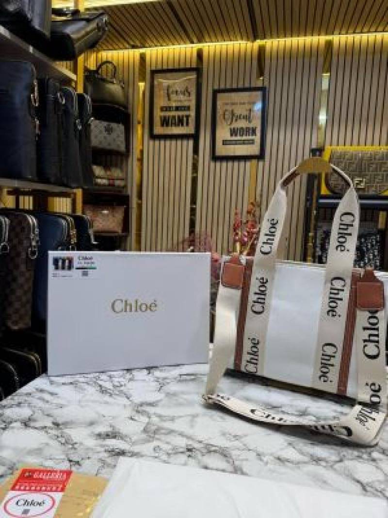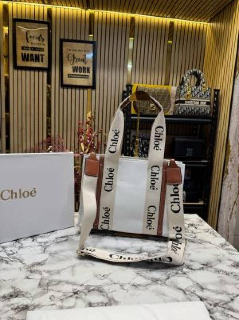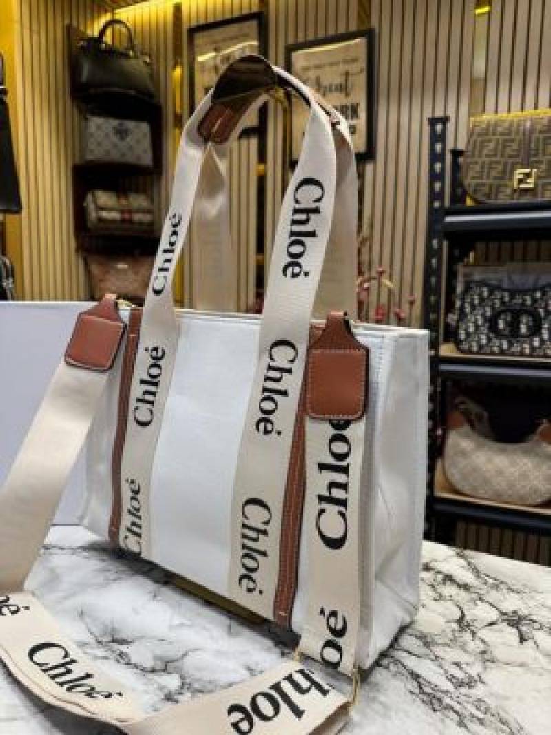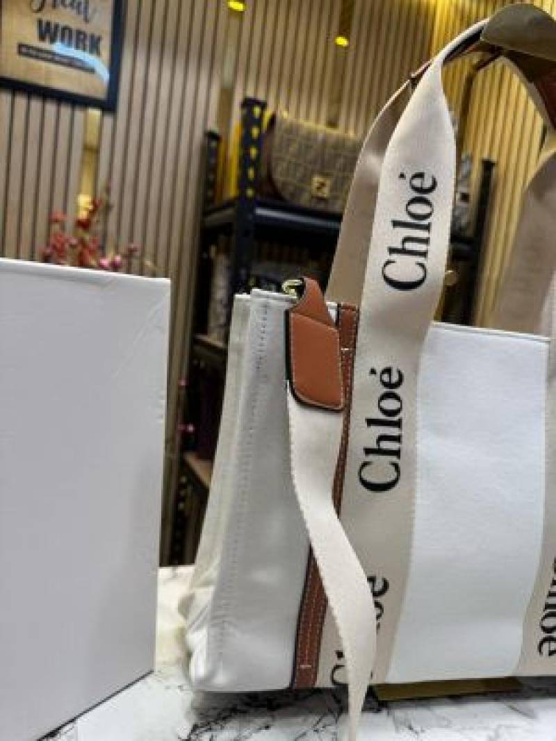 Chloe Woody Tote Bag With Box And Dust Bag (White) (V-8990)