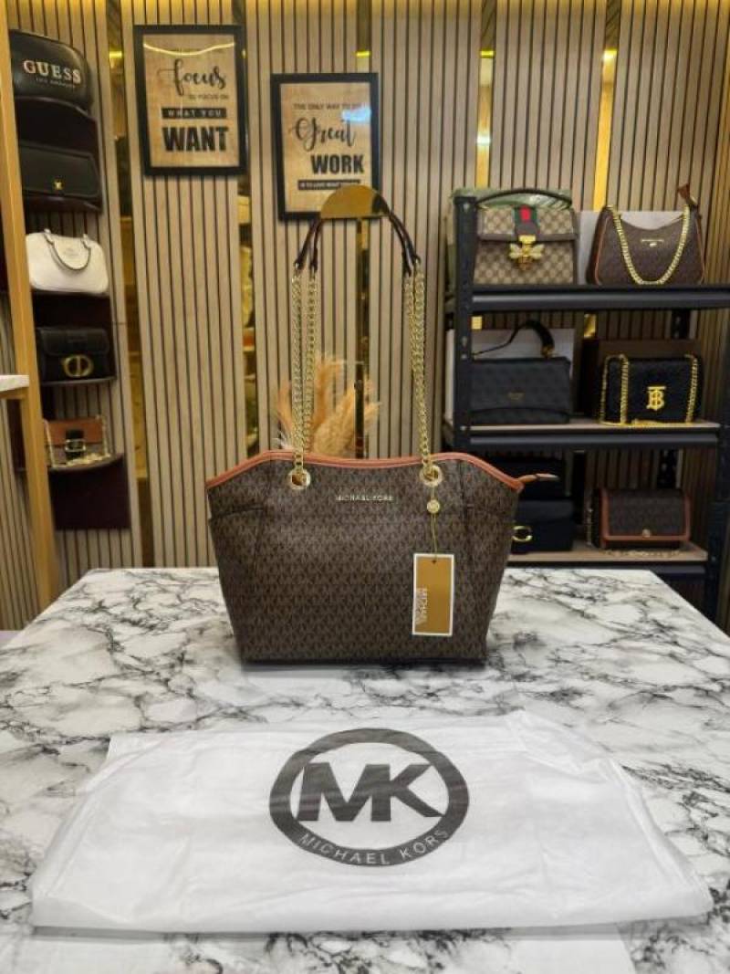 Michael_Kors Jet Set Travel Chain Shoulder Tote Bag Witch Dust Bag (70199-Brown)